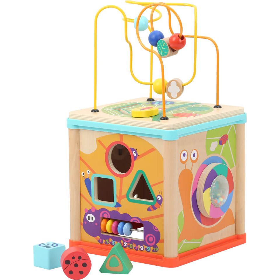 Dieser liebevoll gestaltete Motorikwürfel bietet kleinen Entdeckern ab 12 Monaten jede Menge Spielspaß und fördert ganz nebenbei wichtige Fähigkeiten wie Feinmotorik, Hand-Augen-Koordination und logisches Denken.